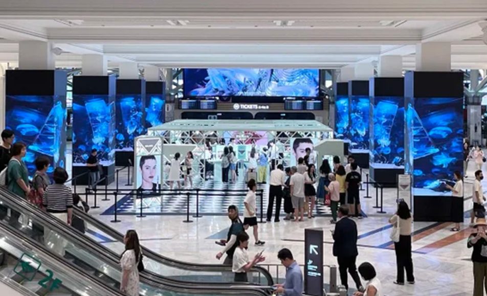 아퍼쳐는 큐레이션된 조명을 통해 낮에서 밤까지 모든 시간에 모듈형 설치물들이 교묘하게 서로 교차하고, 자연스러운 곡선과 액자식 구멍을 통해 상호 작용하도록 설계되었습니다.