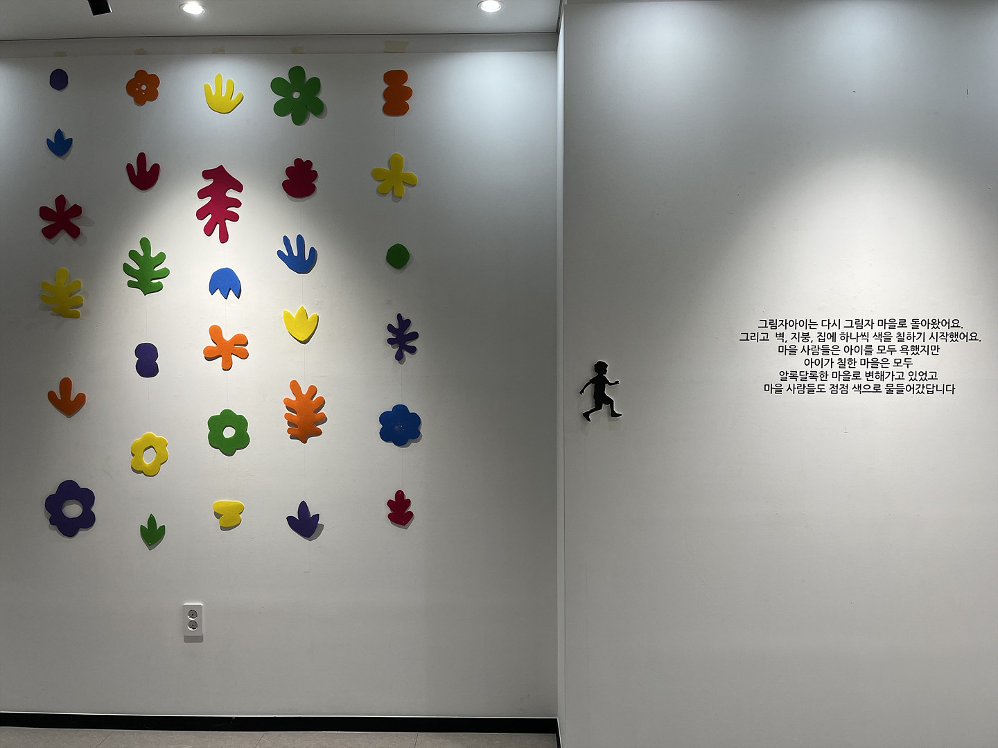 색을 찾아가는 그림자아이의 여정 같았습니다.