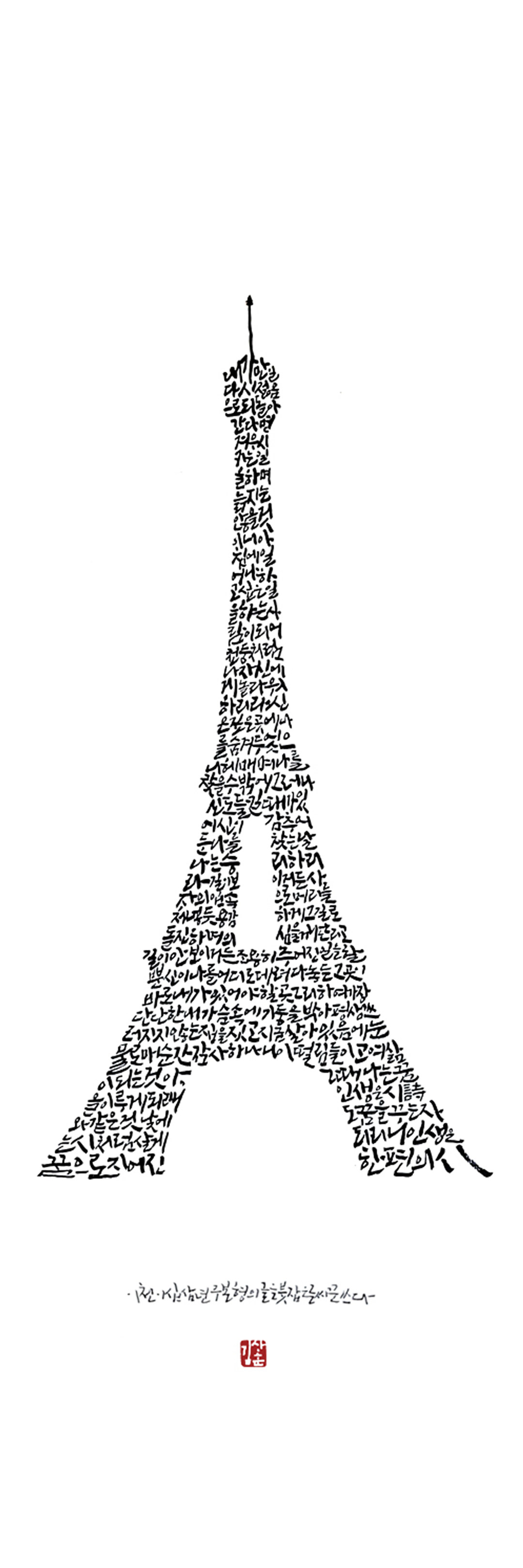 한글 고유의 조형미와 캘리그라피의 예술성을 재조명하는 실험적 시도이기도 합니다. 글씨의 역학성을 면밀하게 고찰하고 다른 각도에서 ‘글씨의 길’을 모색하는 지점입니다.
