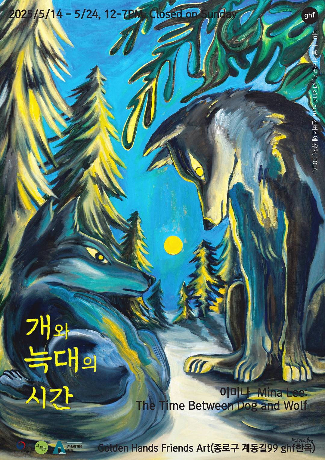 골든핸즈프렌즈는 2025년 5월 14일 수요일부터 5월 24일 토요일까지 이미나 작가의 개인전 《개와 늑대의 시간》을 개최합니다.