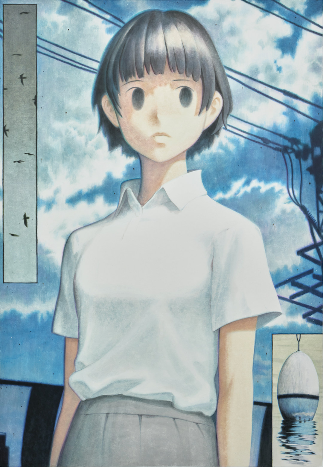 현오의 인물들은 종종 관객을 정면으로 응시하거나, 화면 너머 먼 곳을 바라본다. 이 시선은 감정을 직접적으로 전달하지 않으며, 해석을 지시하지도 않는다. 오히려 관객의 위치를 불안정하게 만든다. 응시는 질문을 던지는 행위라기보다, 질문이 발생하는 조건을 형성하는 장치에 가깝다. 관객은 화면 속 인물과 동일한 시간대—아직 비행하지 않았지만 이미 머무르기만 하는 상태를 벗어난 순간—에 놓이게 된다.