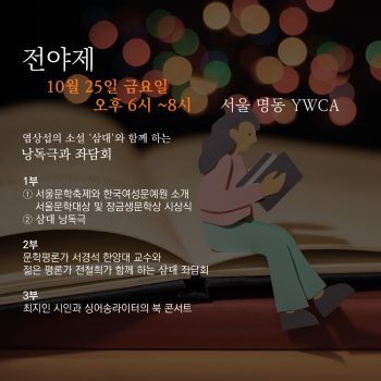 – 문학평론가 서경석 한양대 교수와 젊은 평론가 전철희가 함께 하는 좌담회는 “염상섭의 <삼대>를 통해 본 식민지 서울과 그 속의 주체적 여성”이라는 주제로 <삼대>를 보대 재미있고 깊이 있게 이해하는 계기가 될 것이다.