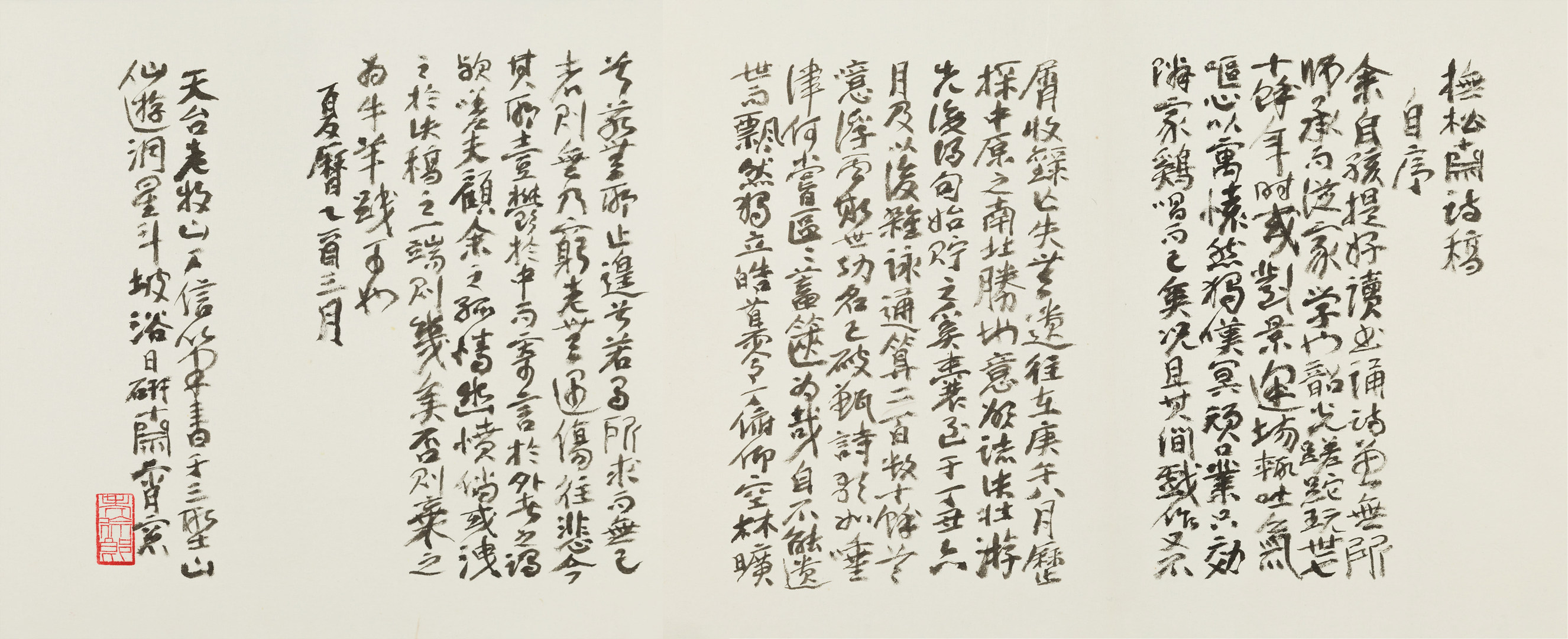 ● 산정 서세옥이 직접 기획하고 출간한 한시집 『무송재시고(撫松齋詩稿)』(2018)를 포함, 중국 유람 당시 직접 쓴 한시와 회화의 어우러짐을 감상할 수 있는〈백두산 천지〉(1990), 〈청산리〉(1990), 산정의 화론이 집약된 대표작 〈구름이 흩어지는 공간〉(1977), 〈장생〉(1970), <사람들>(1994) 등 주요 작품 44점 및 자료 공개.