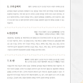 철현금은 20세기 이후 거문고와 기타의 장점을 혼합하여 만들어진 악기로, 오묘하고 신비로운 음색이 특징이다. 오늘은 김영철류 철현금산조를 ‘진양-중모리-중중모리-엇모리-자진모리’ 순으로 선보일 예정이다.