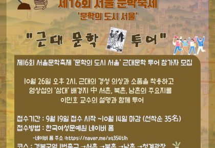 제16회 서울문학축제 ‘2024 문학의 도시 서울’ 축제에서는 염상섭의 소설 ‘삼대’의 배경지를 탐방하며, 문학과 역사를 동시에 즐길 수 있는 근대문학 투어를 진행한다.