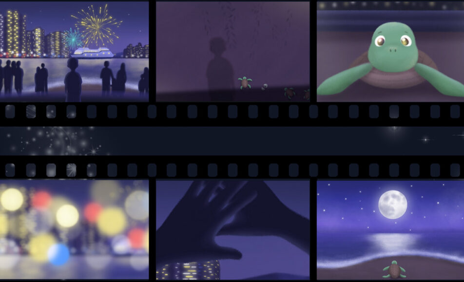 '춤추는 별빛'은 과학 전문가 및 공연 기획가 총 4인이 ‘빛 공해’를 주제로 기획한 과학·예술 융합 체험형 전시입니다. 전시 포스터 속 도시 야경, 산란광, 빛 공해, 아이와 거북이, 밤하늘 등 다양한 이야기를 만나보세요!