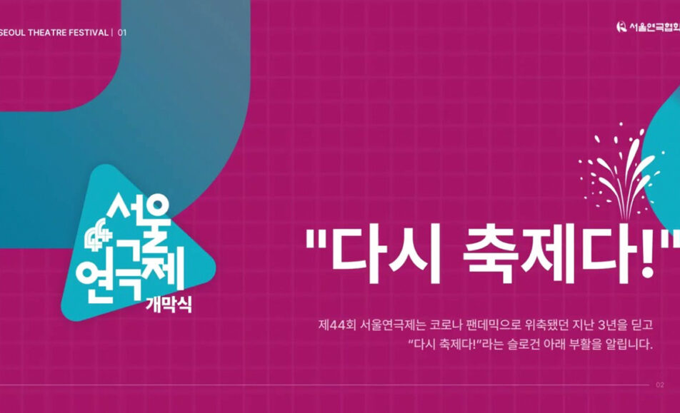 ‘다시 축제다!’라는 슬로건으로 시작하는 제44회 서울연극제는 크게 ‘공식참가작’과 ‘열린축제’로 구성되었고, 4월 21일부터 6월 18일까지 총 59일간 대학로 일대에서 진행된다.