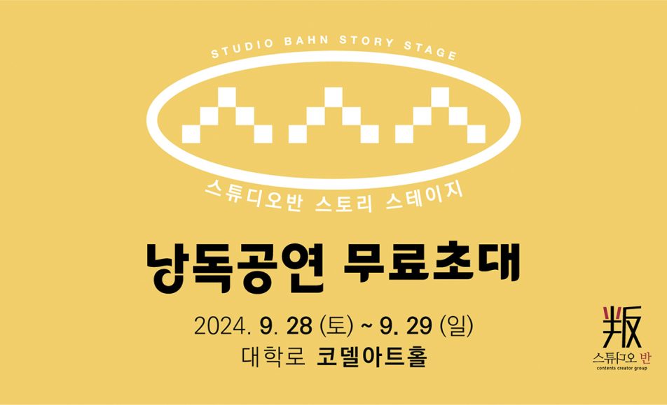 공연예술 창작집단 스튜디오반(대표 · 연출 이강선)이 낭독 공연 '2024 스튜디오반 스토리 스테이지(Studio Bahn Story Stage)’라는 이름으로 2편의 연극 작품을 9월 28일과 29일 이틀에 걸쳐 대학로 코델아트홀 무대에 올린다.