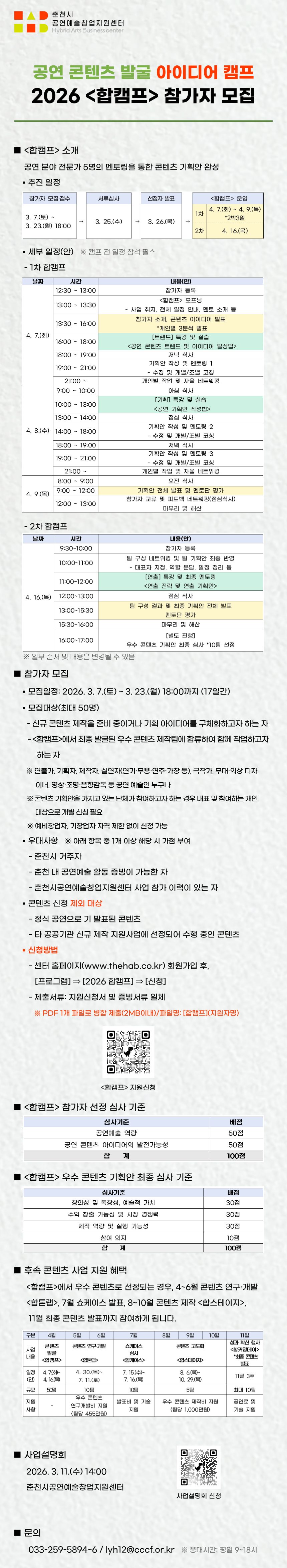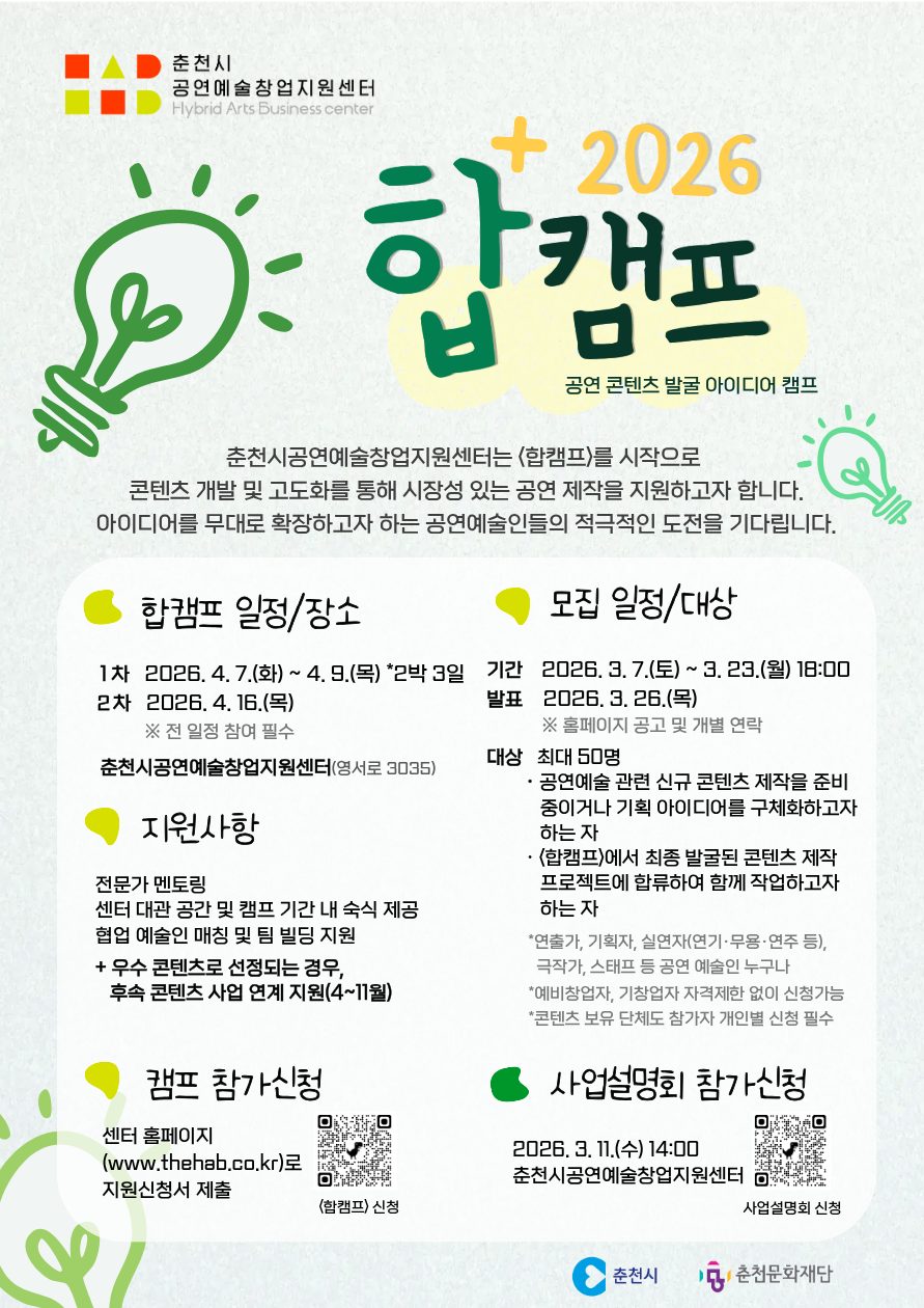 춘천시공연예술창업지원센터 │ 2026 합캠프