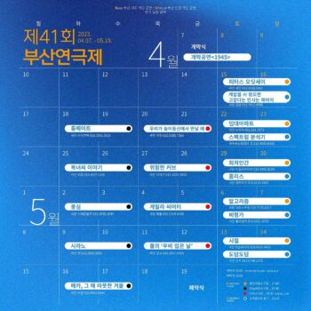 부산연극협회는 다음 달 7일부터 5월 19일까지 ‘제41회 부산연극제’를 개최한다. 행사는 개막식이 예정된 영화의전당을 비롯해 부산예술회관, 남구 평화공원, 하늘바람 소극장, 용천지랄 소극장, 나다 소극장, 소극장 6번출구에서 열린다. 개막작으로는 부산연극제작소 동녘의 작품 ‘1945’가 선정됐다.