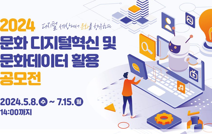 문화체육관광부와 한국문화정보원은 문화 분야에서 디지털 기술 및 데이터를 활용한 창의적인 아이디어와 우수사례를 발굴하여 디지털 기반의 K-컬처 산업을 육성하고자 7월 15일(월) 14:00까지 「2024 문화 디지털혁신 및 문화데이터 활용 공모전」을 개최한다.